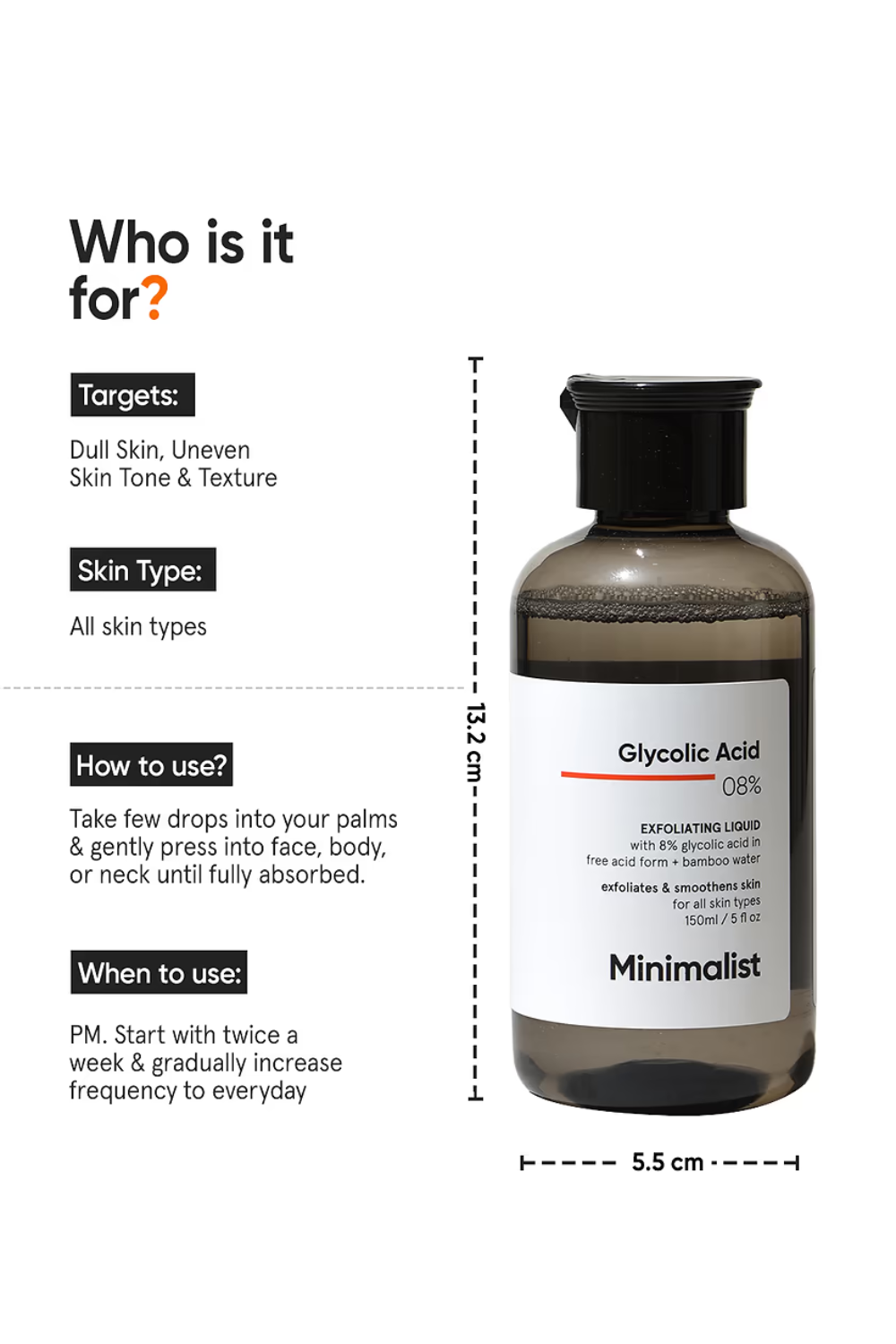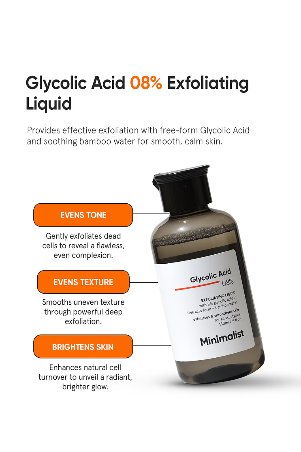 Minimalist Glycolic Acid 08% Exfoliating Liquid, 150ml