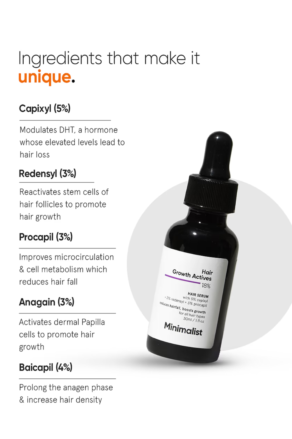 Minimalist Hair Growth Actives 18% Hair Serum, 30ml