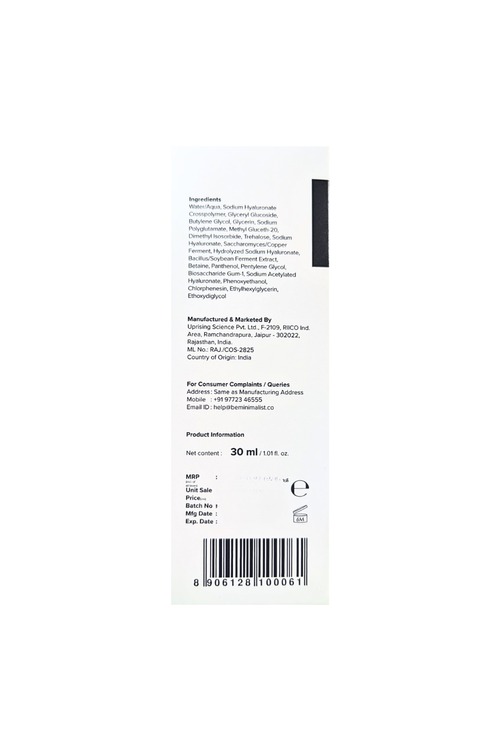 Manufactured By: Uprising Science Pvt. Ltd., F-2109, RICO Ind. Area, Ramchandrapura, Jaipur-302022, Rajasthan, India.