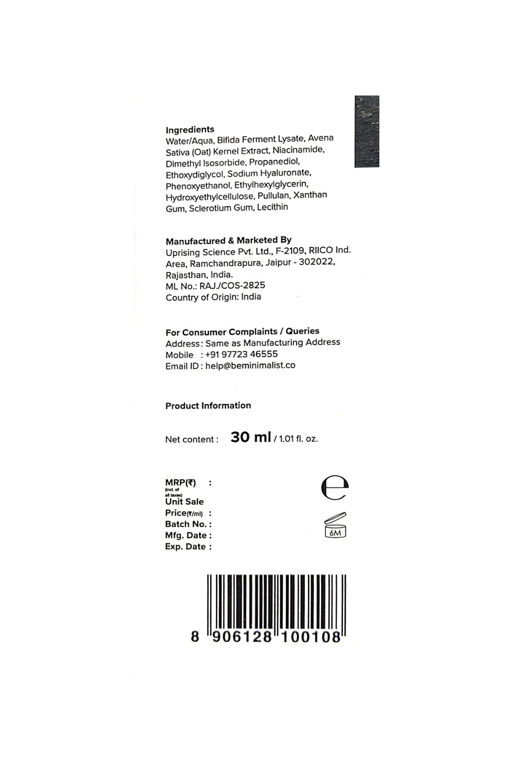 Manufactured By: Uprising Science Pvt. Ltd., F-2109, RICO Ind. Area, Ramchandrapura, Jaipur-302022, Rajasthan, India.