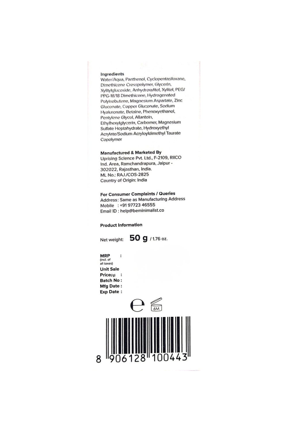 Manufactured By: Uprising Science Pvt. Ltd., F-2109, RICO Ind. Area, Ramchandrapura, Jaipur-302022, Rajasthan, India.