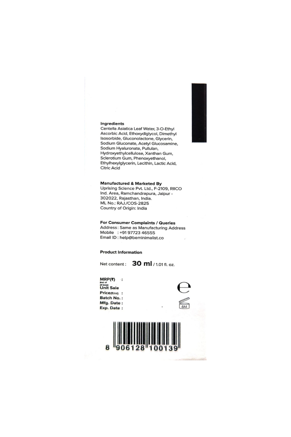 Centella Asiatica Leaf Extract, 3-O-Ethyl Ascorbic Acid, Dimethyl Isosorbide, Ethoxydiglycol, Glycerin, Sodium Gluconate, Acetyl Glucosamine, Gluconolactone, Citric Acid, Pentylene Glycol, Sodium Hyaluronate, Pullulan, Hydroxyethylcellulose, Hydrolyzed Sodium Hyaluronate, Xanthan Gum, Sclerotium Gum, Phenoxyethanol, Ethylhexylglycerin, Lecithin, PEG/PPG-17/6 Copolymer, Trisodium Ethylenediamine Disuccinate, Sodium Citrate