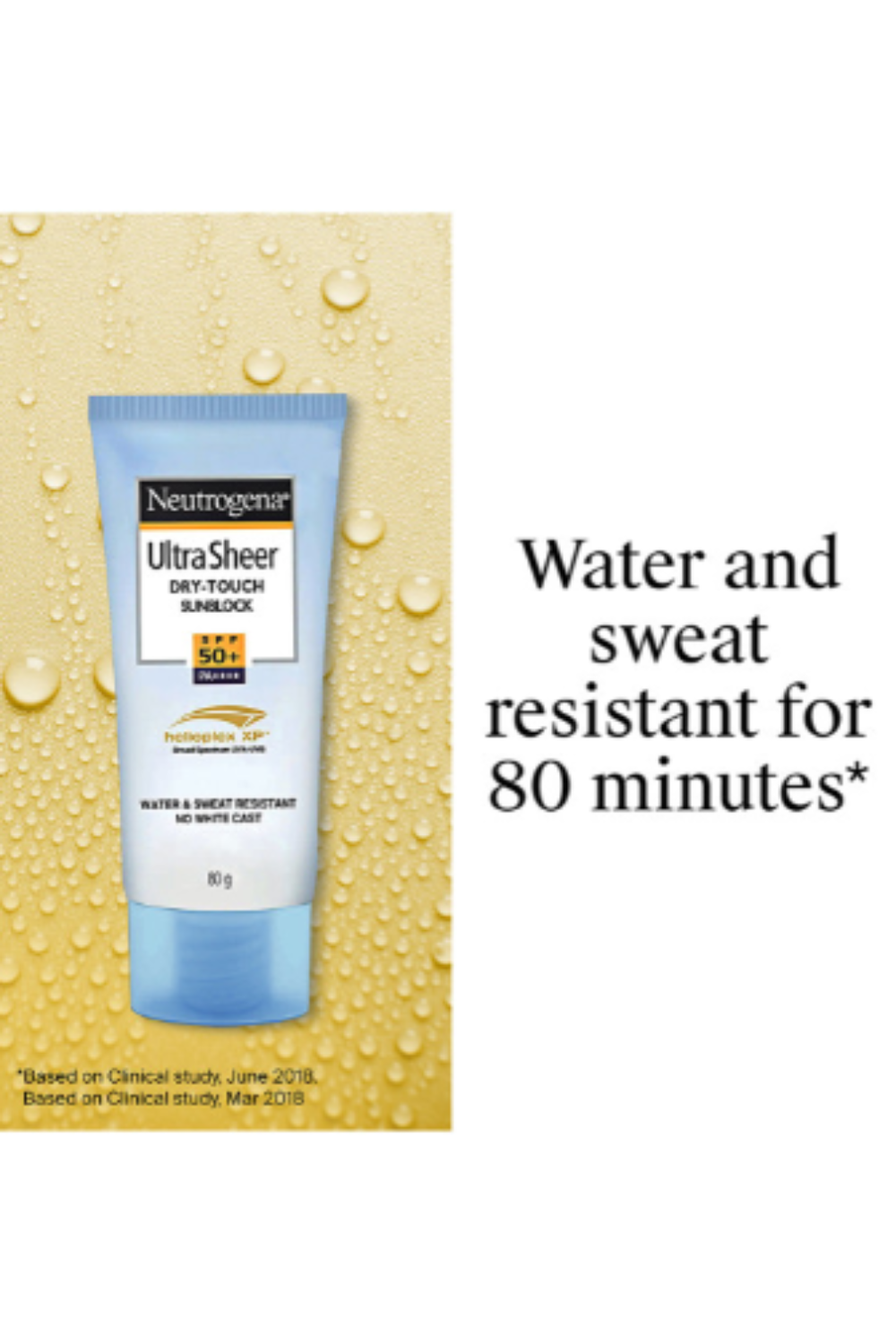 Neutrogena Ultra Sheer Dry Touch Sunblock SPF 50+ has Helioplex Technology which offers powerful protection against sun damage while leaving a weightlessly invisible feeling on your skin. Available in packs of 80ml and 30ml