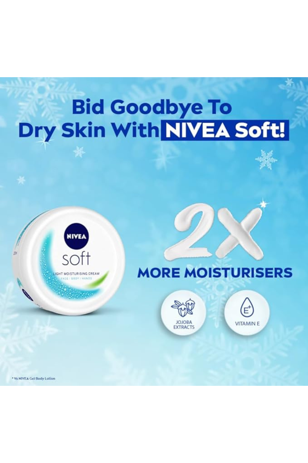 Use it on your dry hands and chapped feet during the chilled winter days to obtain great results. You can also apply it regularly after your cleansing ritual for smooth, soft skin. With just one application, the cream dissipates into your skin, even in the sweltering heat. Keep your skin healthy and happy with the fresh smelling NIVEA Soft moisture cream. Try it, you’ll love it. Highly effective, intensive moisturizing cream Quickly absorbs and refreshes the skin Leaves your skin soft and supple For everyday use Skin compatibility dermatologically approved