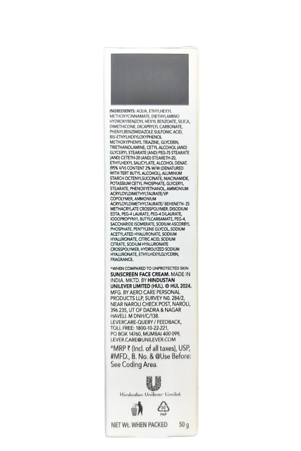 Marketed By: Sunscreen Face Cream Made in India Marketed by Hindustan Unliver Limited (HUL)