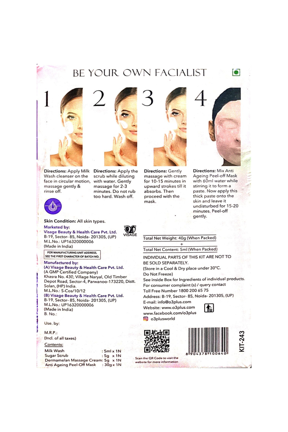 - Dermatologically tested facial kit is suitable for all types of