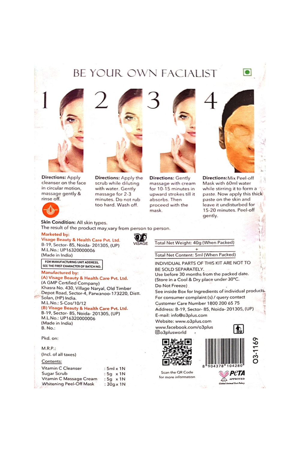 Marketed By: Visage Beauty & Health Care Pvt. Ltd. B-19, Sector- 85, Noida- 201305, (UP), India