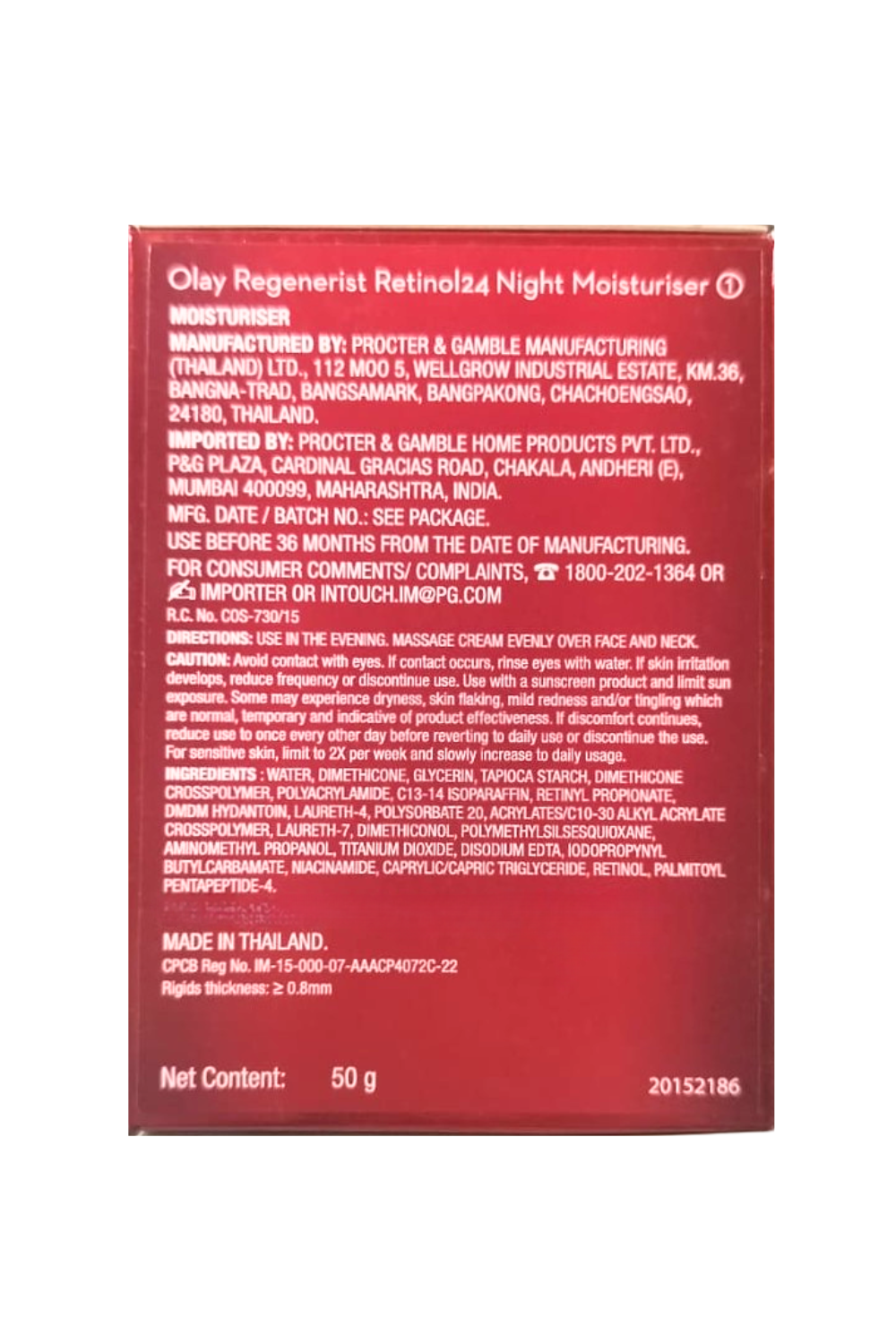 Wake up to smooth and glowing skin with Olay Regenerist Retinol 24 Night Face Cream. Olay Regenerist Retinol 24 Face Cream combines two ultra-potent ingredients: Vitamin B3 (Niacinamide) + Retinoid Complex for 24 hours of hydration, as well as a bounty of benefits. This retinol face cream will bring you visible improvements in fine lines & wrinkles, smoothness, brightness, firming, dark spots, and pores. This night cream with Retinol 24 absorbs quickly and goes deep into your skin’s surface layers so you wake up every morning to younger-looking, glowing skin. Retinol 24 face cream's formula is fragrance free and free of dyes. Use Olay Retinol 24 Night Cream daily for 28 days. See true skin appearance transformation. Olay Retinol 24 Night Facial Cream is suitable for daily use, as well as dry, oily and normal skin types.