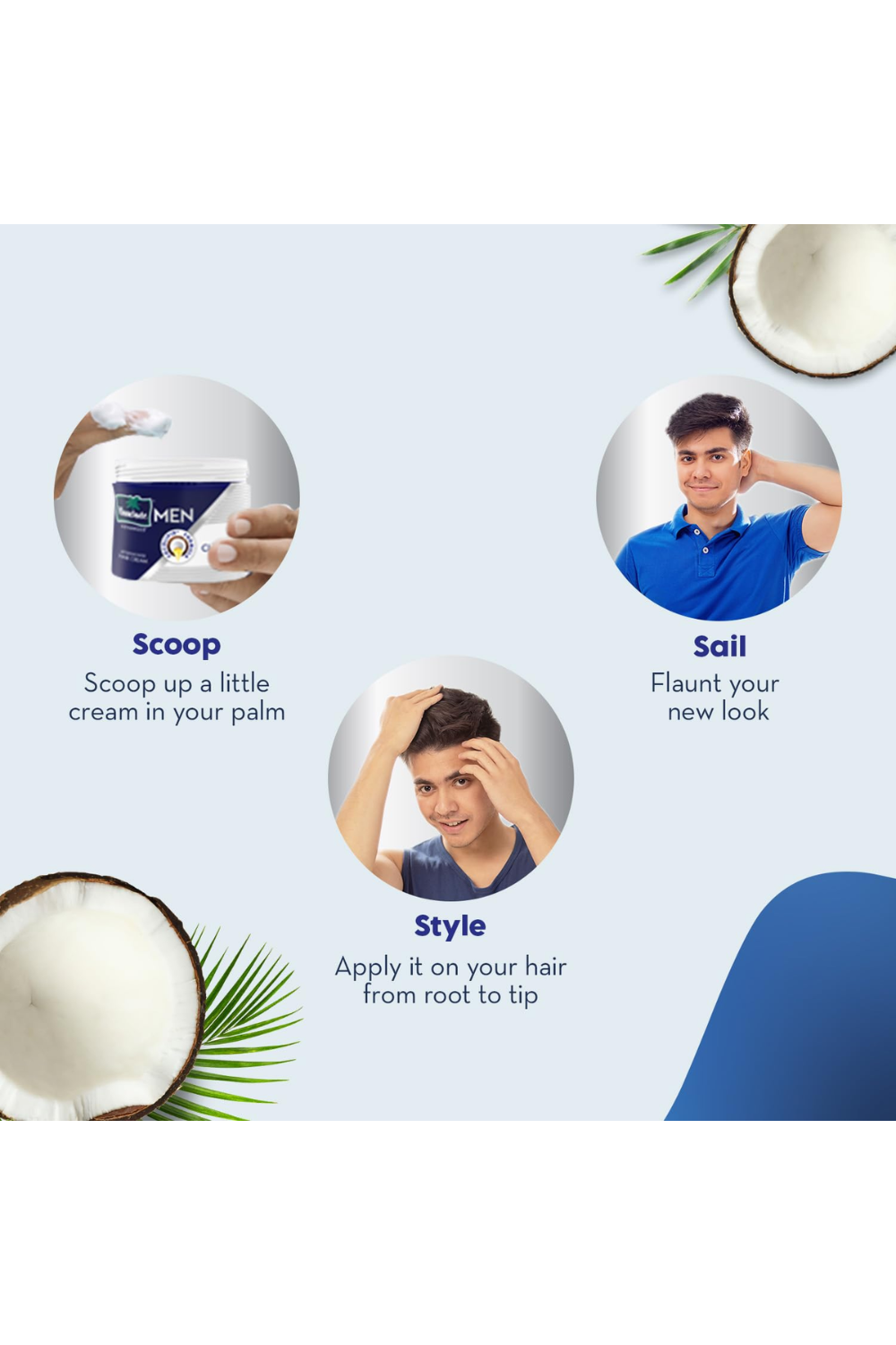 Parachute Hair Cream for men is enriched with Goodness of Coconut to provide soft, smooth and nourished hair. Use it everyday, as a hair cream after shower, for a non sticky, confident look. This non-sticky hair cream helps to keep hair well maintained and tidy throughout the day. Hair cream men effectively solves several damaged hair problems like dry and dull hair. Hair cream men provides a moisturised look and natural shine. It offers an added advantage of hair cream styling your hair for a smart winning look. Use this hair cream man as a hair oil replacement post wash for everyday wear. It is available in Classic, Anti Hairfall and Anti dandruff hair cream variants. Made with coconut proteins, Parachute Hair Cream for men is safe to use for everyday wear. Classic hair cream has the goodness and non-sticky nourishment of coconut for a confident look. Anti dandruff hair cream has the goodness of coconut along with lemon oil, neem oil and climbazole for dandruff-free hair. Anti hairfall hair cream has the goodness of coconut and nourishment of almond oil which reduces hairfall by up to 95%.