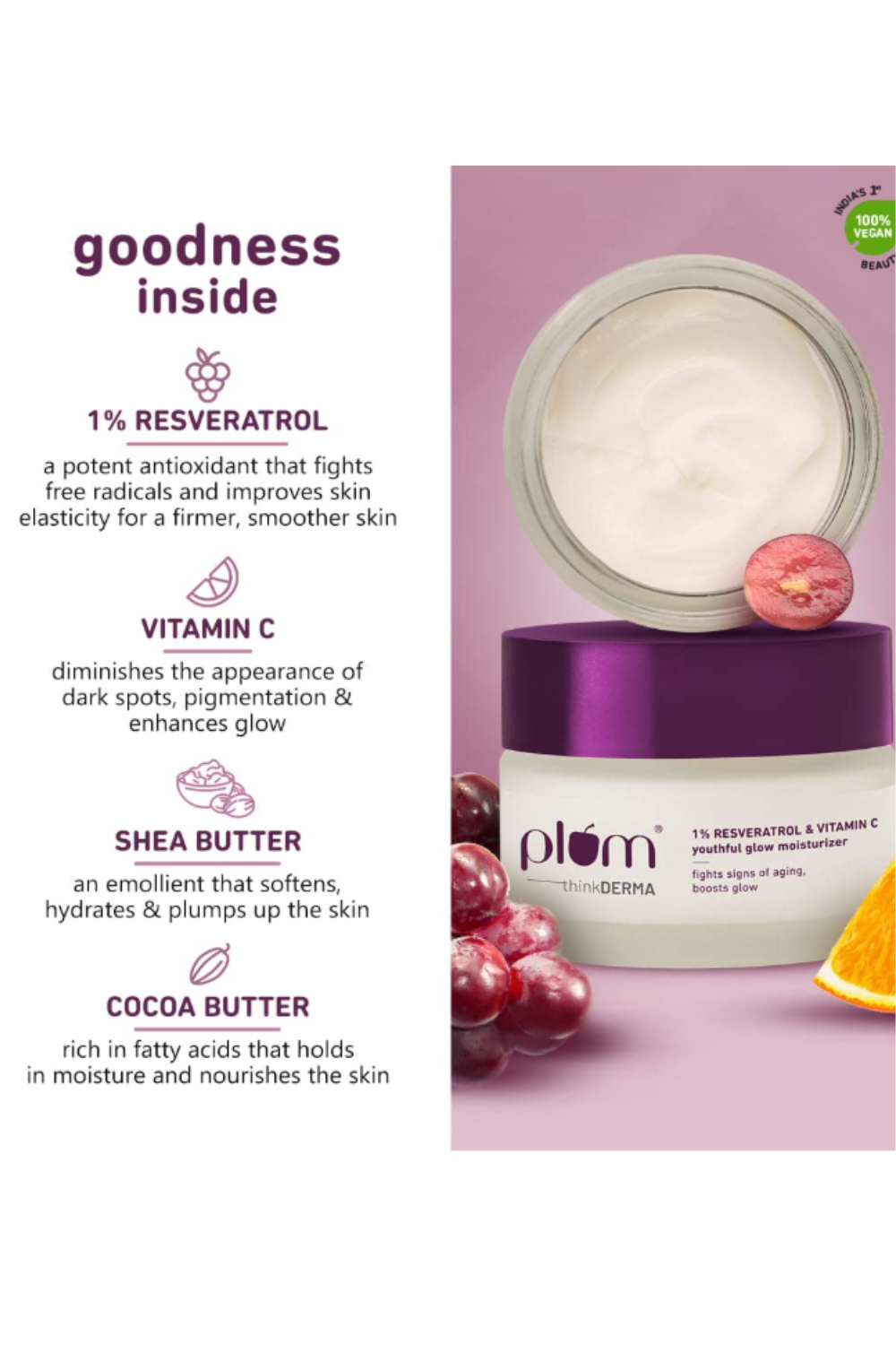 Plum 1% Resveratrol & Vitamin C youthful glow moisturizer, 50g