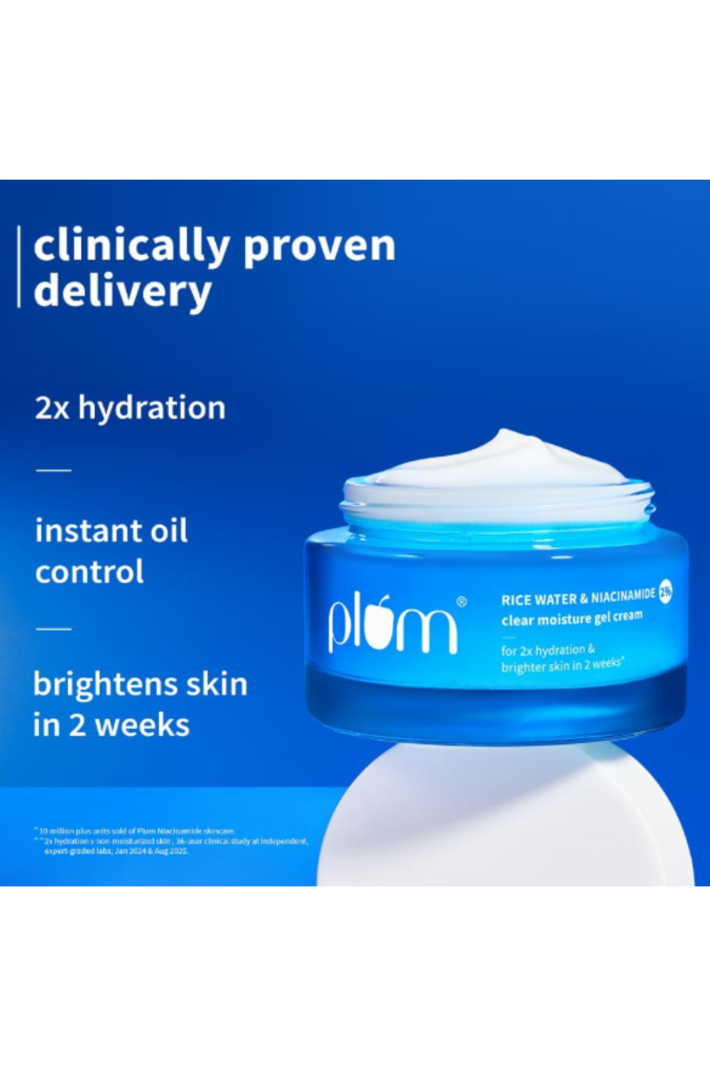 Plum 2% RICE WATER & NIACINAMIDE Clear Moisture Gel Cream, 50gm