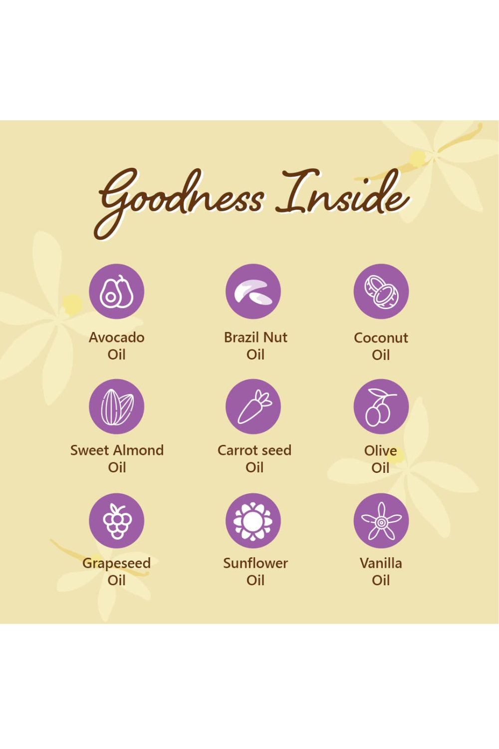 Vanilla, avocado, and olive oils: Moisturize and nourish skin