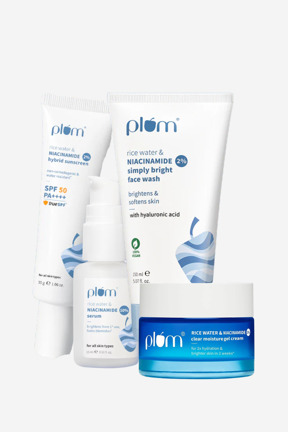 Plum Combo with RIce Water And Niacinamide, ( 100ml, 50ml, 50g, 50g )