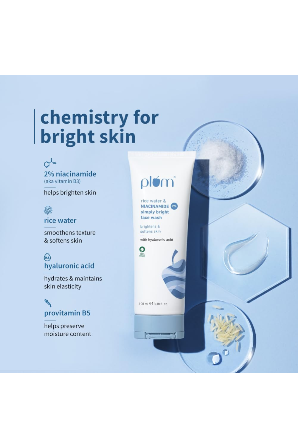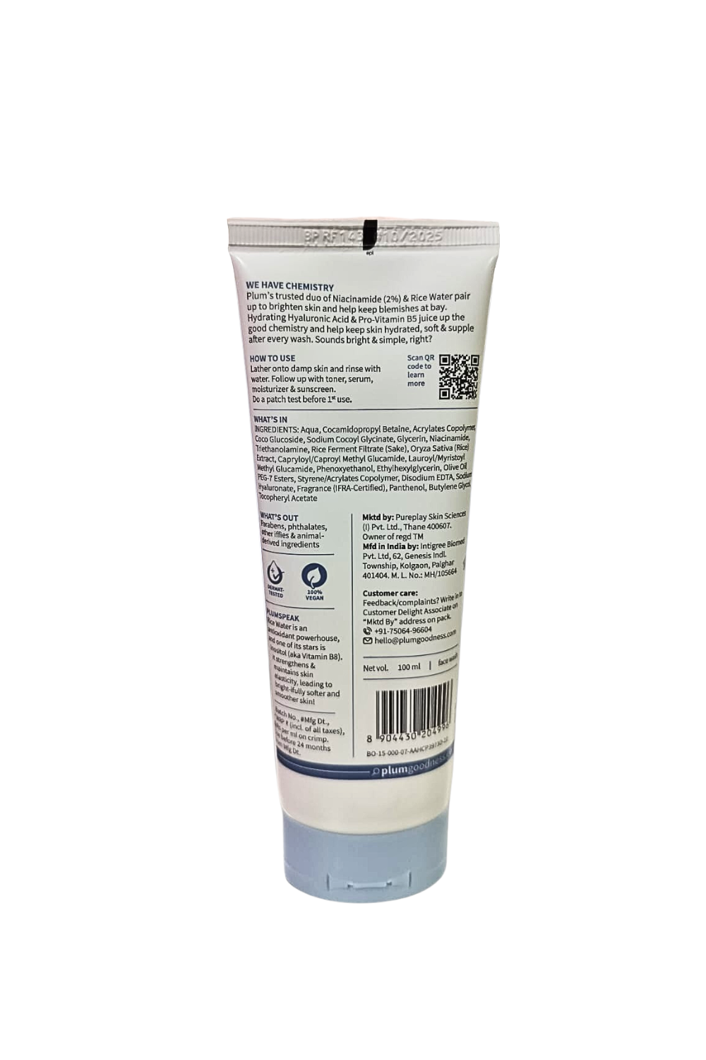Plum Rice Water & NIACINAMIDE Simply Bright Face Wash, 100ml