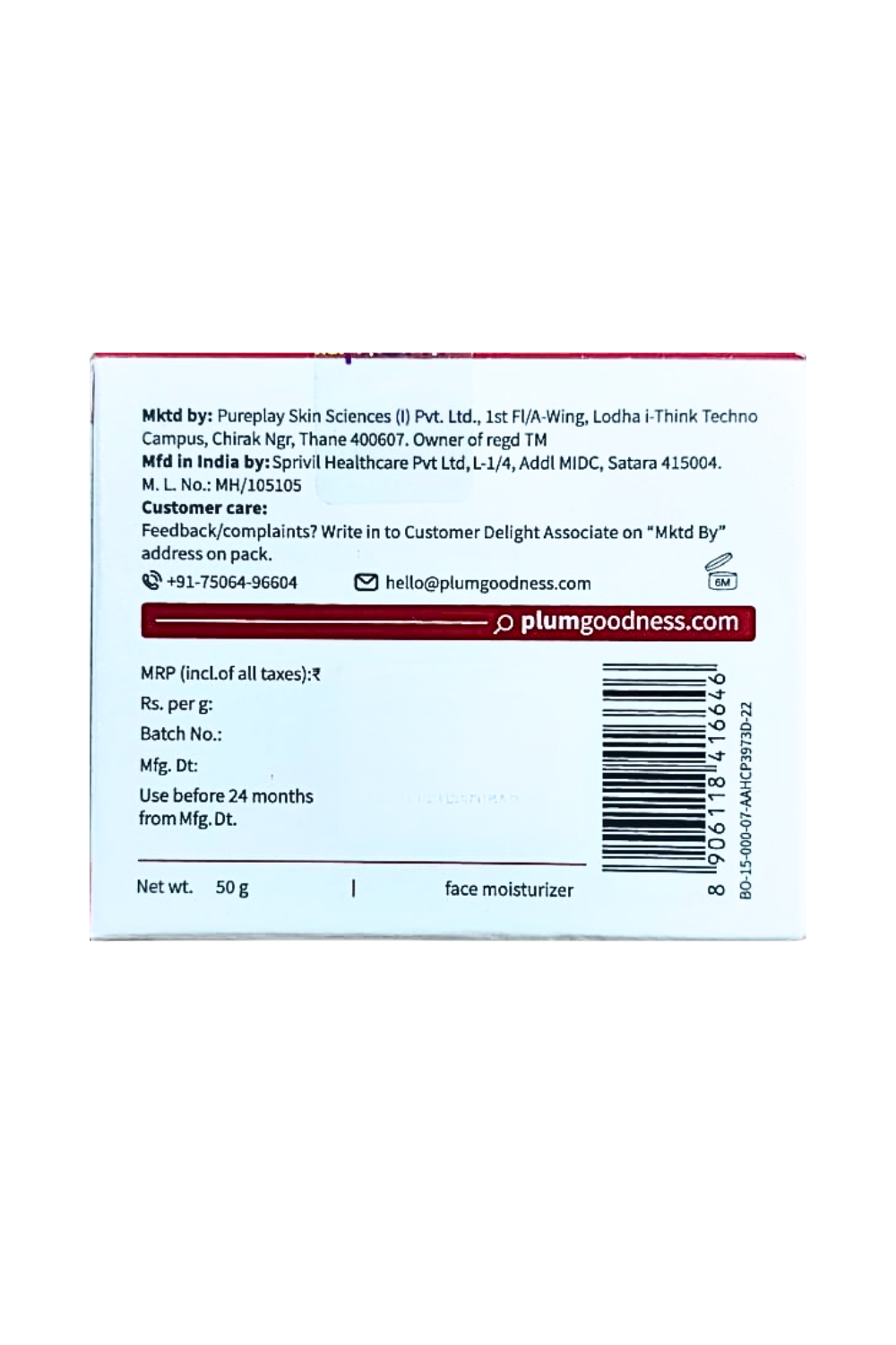 Marketed By: Pureplay Skin Sciences (I) Pvt. Ltd., 1st Fl/A-Wing, Lodha i-Think Techno Campus, Chirak Ngr, Thane 400607, Owner of regd TM