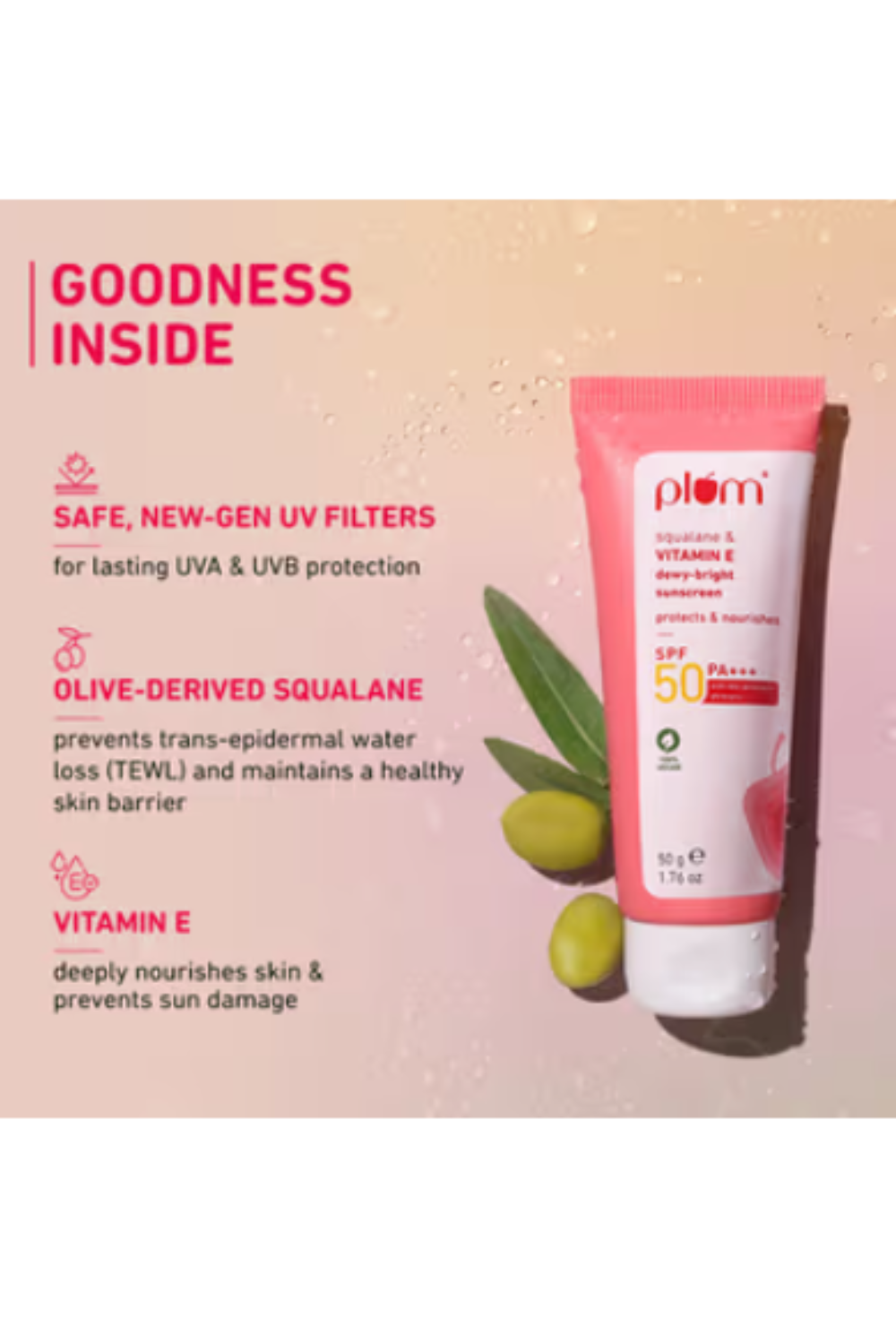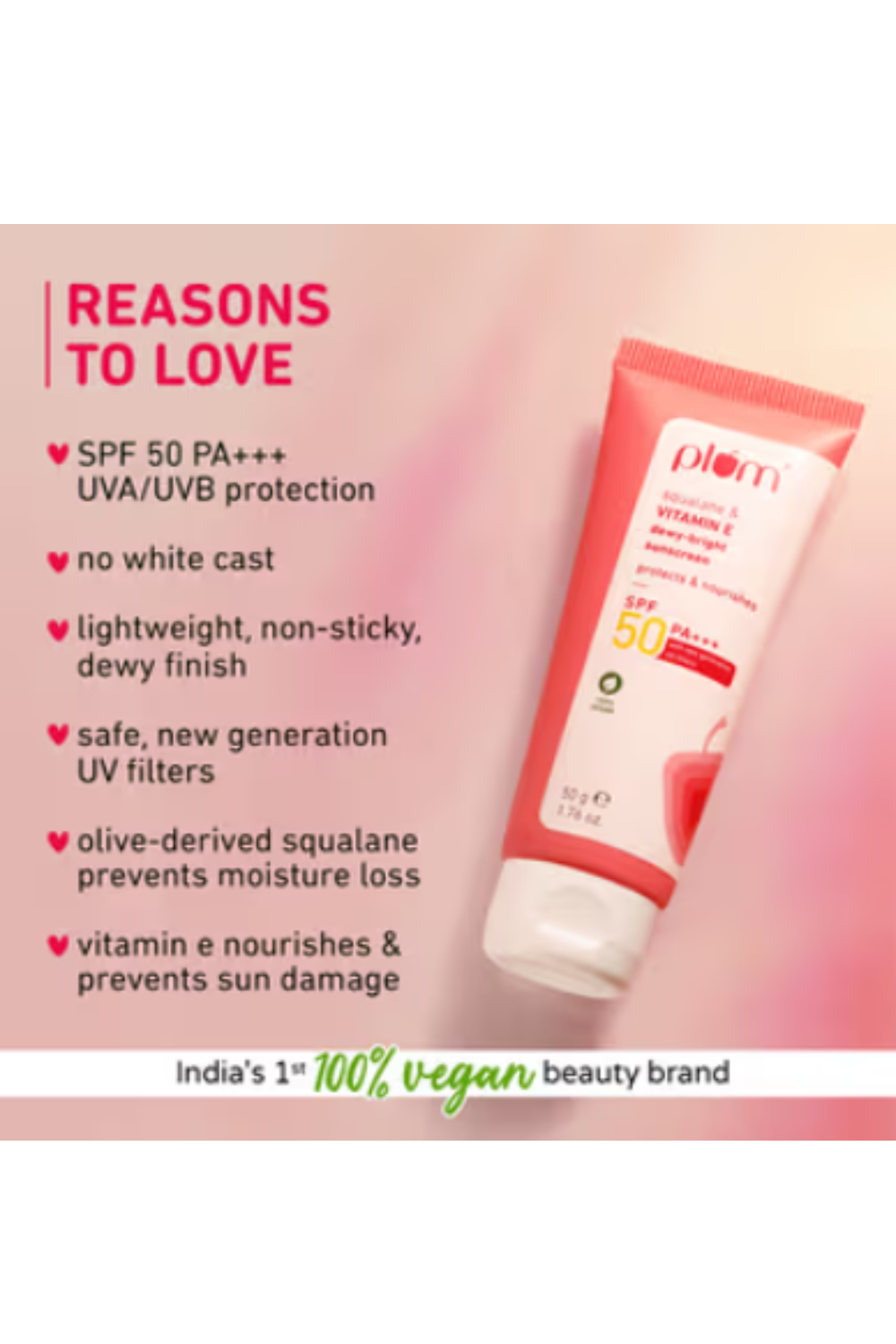 Plum Squalane & VITAMIN E Dewy-Bright Sunscreen SPF 50 PA+++, 50 gm