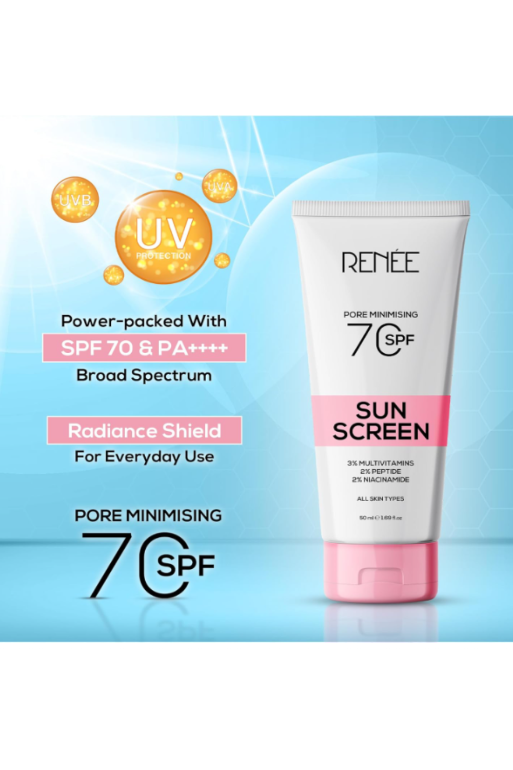 RENEE Pore Minimising Sunscreen SPF 70 With Peptides, Multivitamins and Niacinamide, 50ml