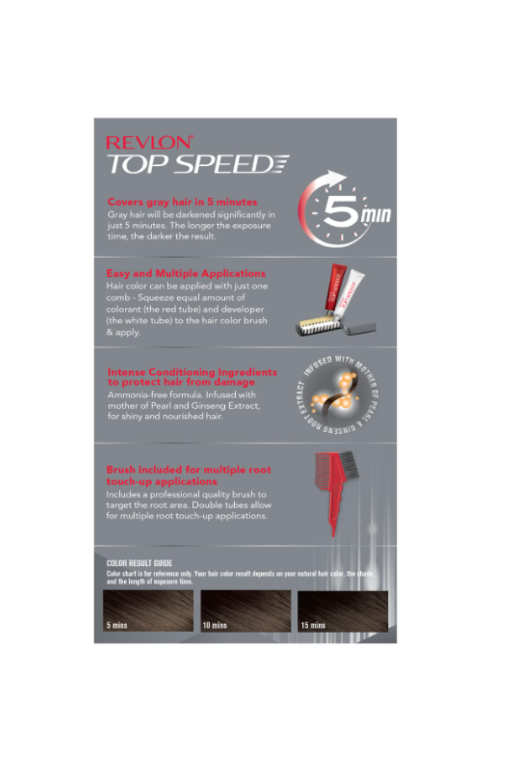 Ammonia Free100% Grey CoverageCovers Grey Hair in 5 minutes- 1. Start by putting on protective gloves provided in the pack.