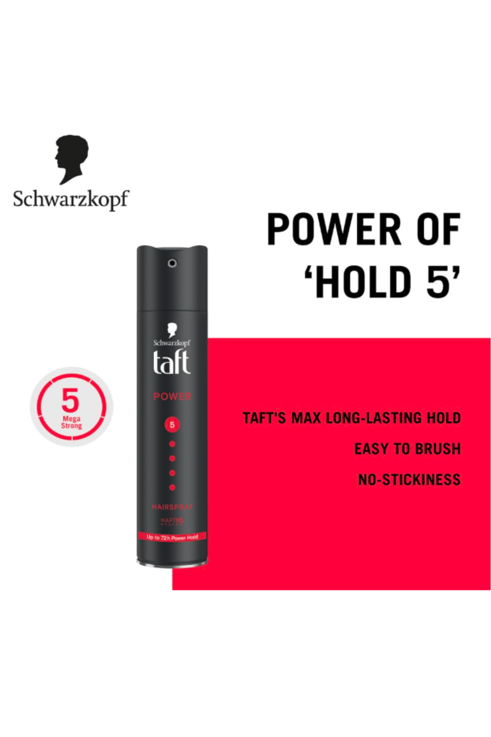 Schwarzkopf TAFT Power Hair Spray With Caffeine Formula For Strengthening Hold 5, Lasts 27 Hrs