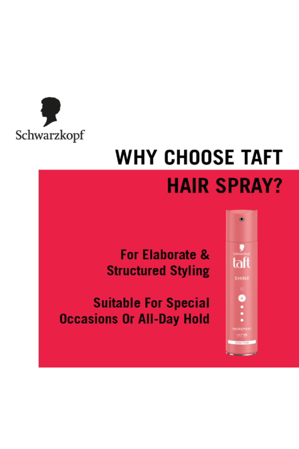 Schwarzkopf Taft Shine Hair Spray Hold 4 For Radiant Shine, 250ml