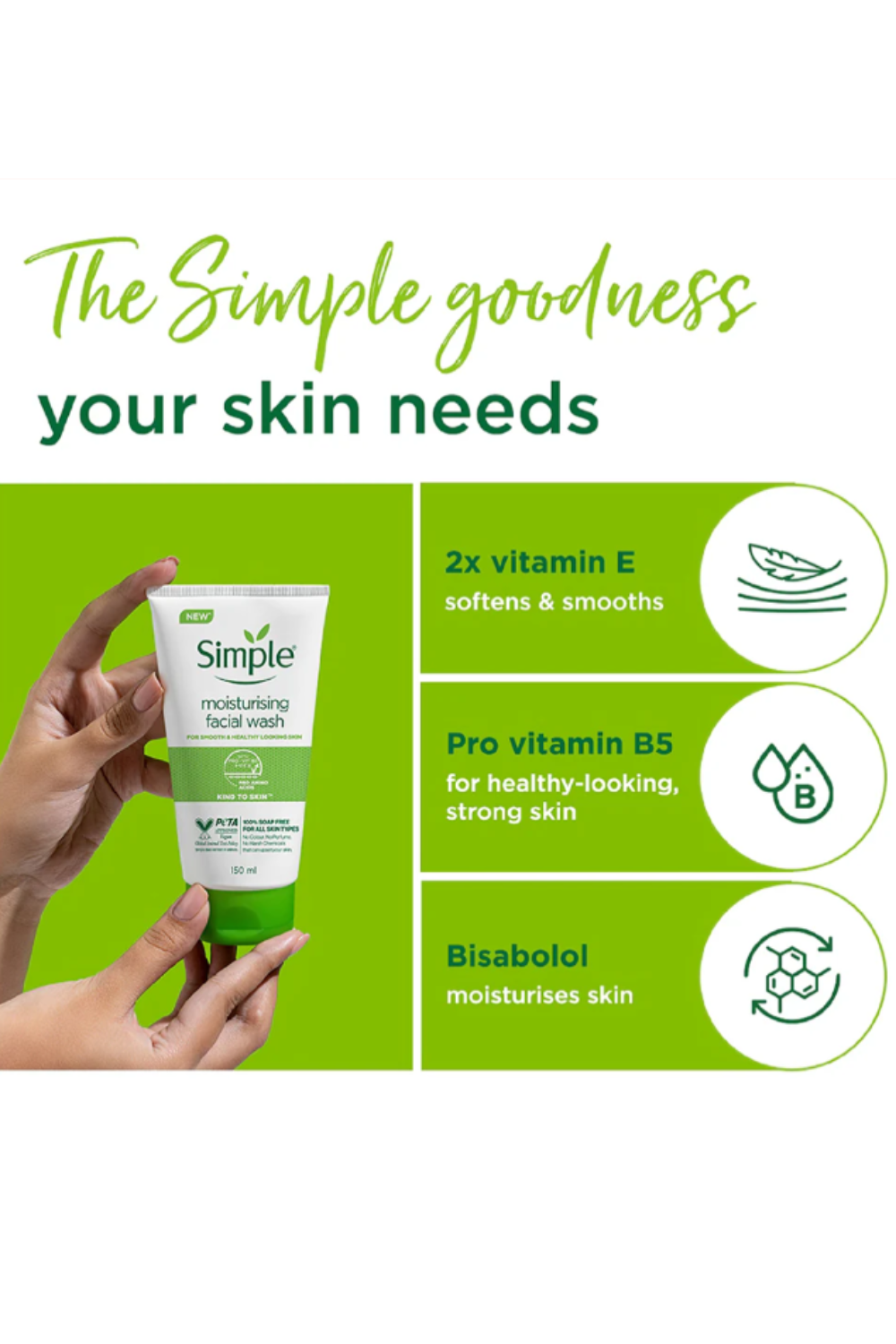Gentle Formula: Simple Kind To Skin Moisturising Facial Wash boasts a gentle formula that effectivelycleanses your skin without causing dryness or irritation