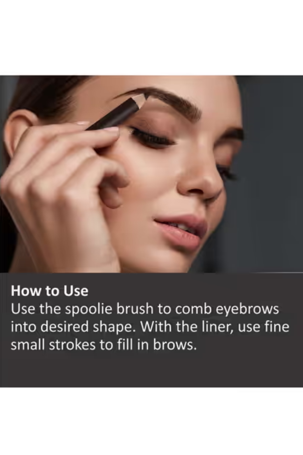 - Use the spoolie to comb and shape the brows. Twist up the tip of the pencil until it is slightly exposed. Use short, light strokes in the direction of your natural hair growth to apply.