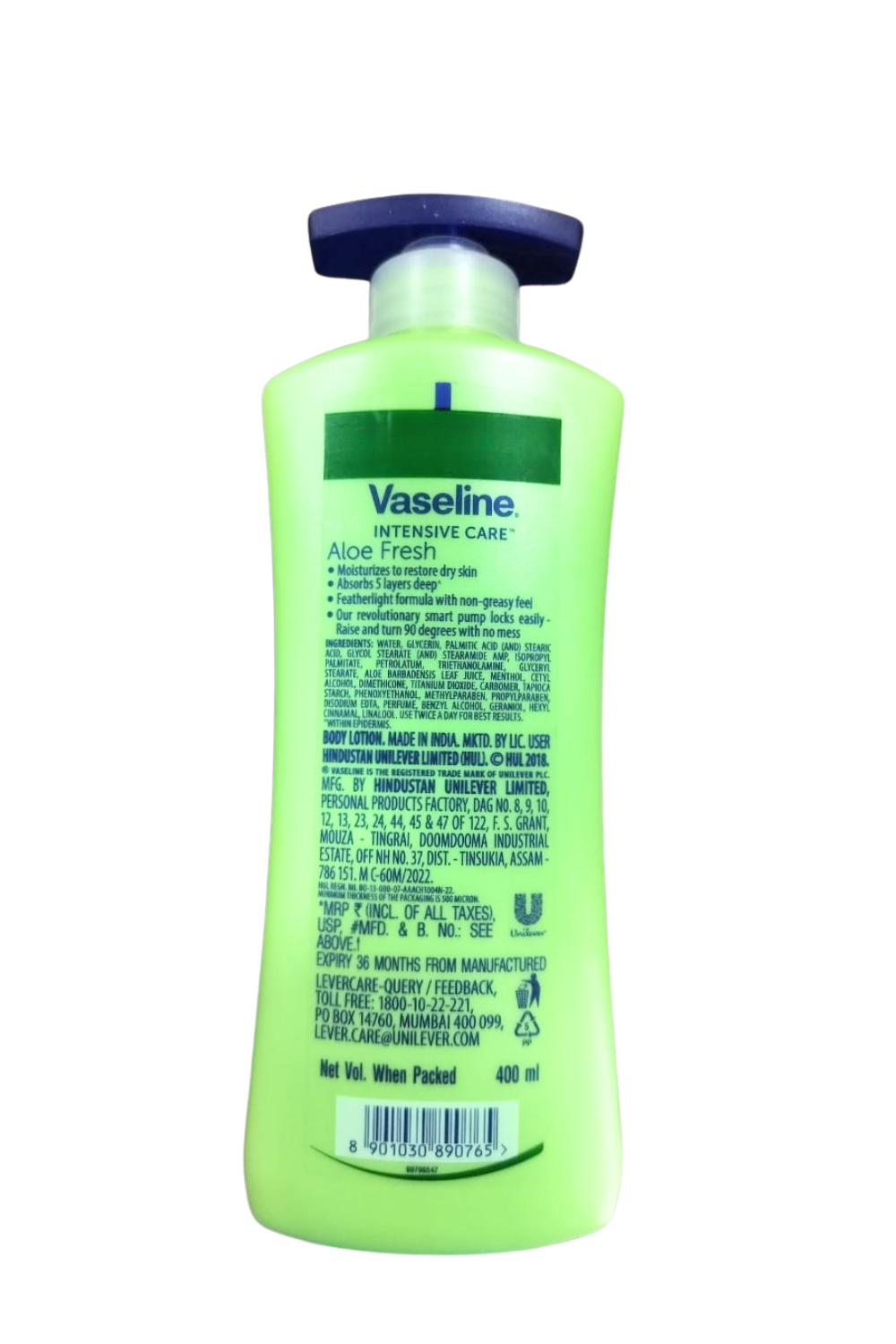 Vaseline aloe fresh body lotion is available in 100ml, 200ml and 400ml packs.